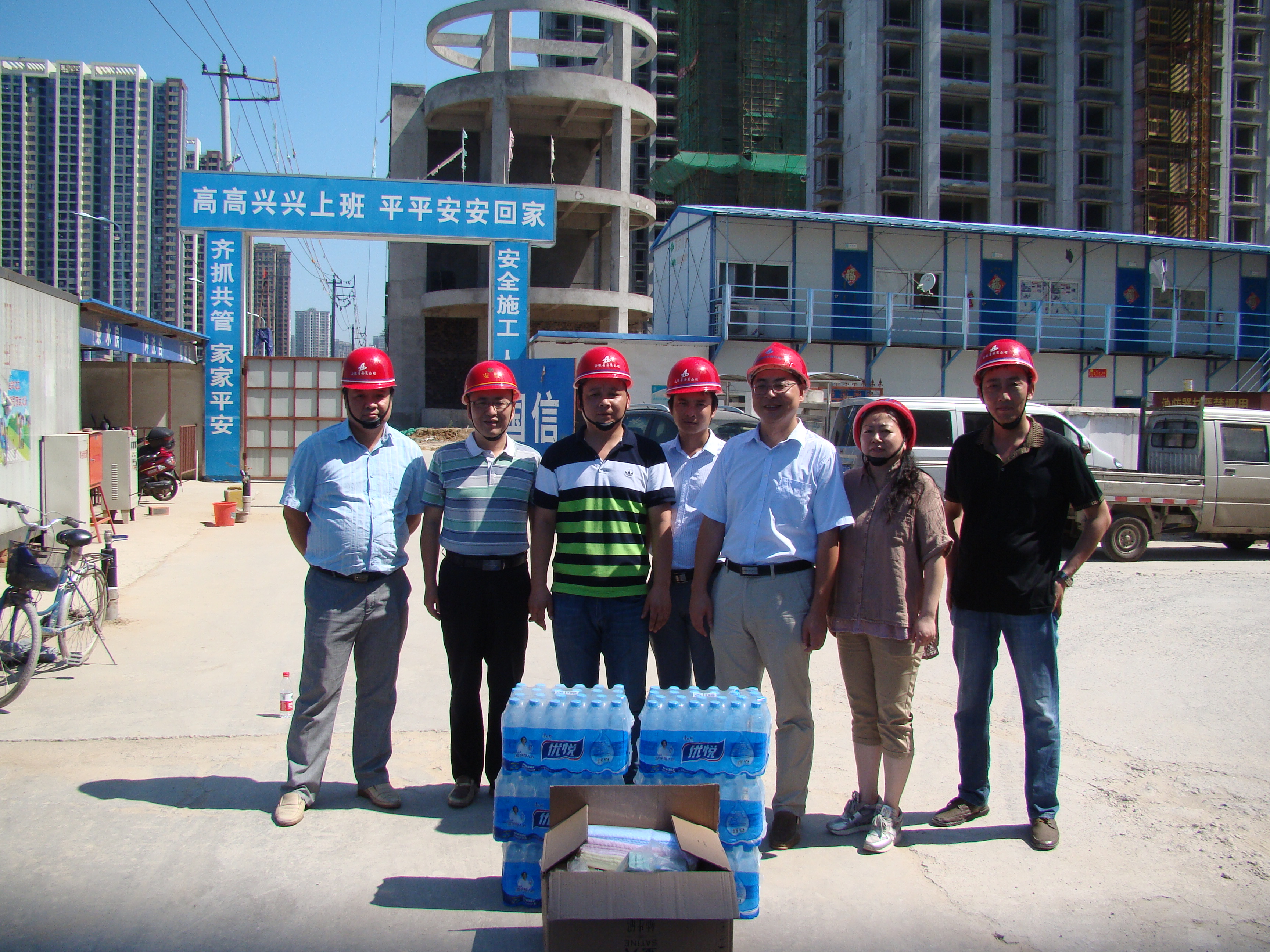 每到一個(gè)項(xiàng)目,公司領(lǐng)導(dǎo)都對(duì)項(xiàng)目部施工情況進(jìn)行詳細(xì)了解,仔細(xì)詢問了現(xiàn)場(chǎng)防暑降溫工作的落實(shí)情況,對(duì)炎熱天氣下仍在一線緊張工作的員工表示親切的問候,并把綠豆、白糖、毛巾、礦泉水、風(fēng)油精、人丹、十滴水等防暑降溫用品親自送到他們的手中,叮囑大家一定要做好防暑降溫工作,項(xiàng)目部一定要合理安排好作息時(shí)間,在施工現(xiàn)場(chǎng)多配備防暑降溫飲品及藥品,搞好食堂衛(wèi)生,做好后勤保障等工作,采取各種有效措施,確保員工的身體健康和施工安全。