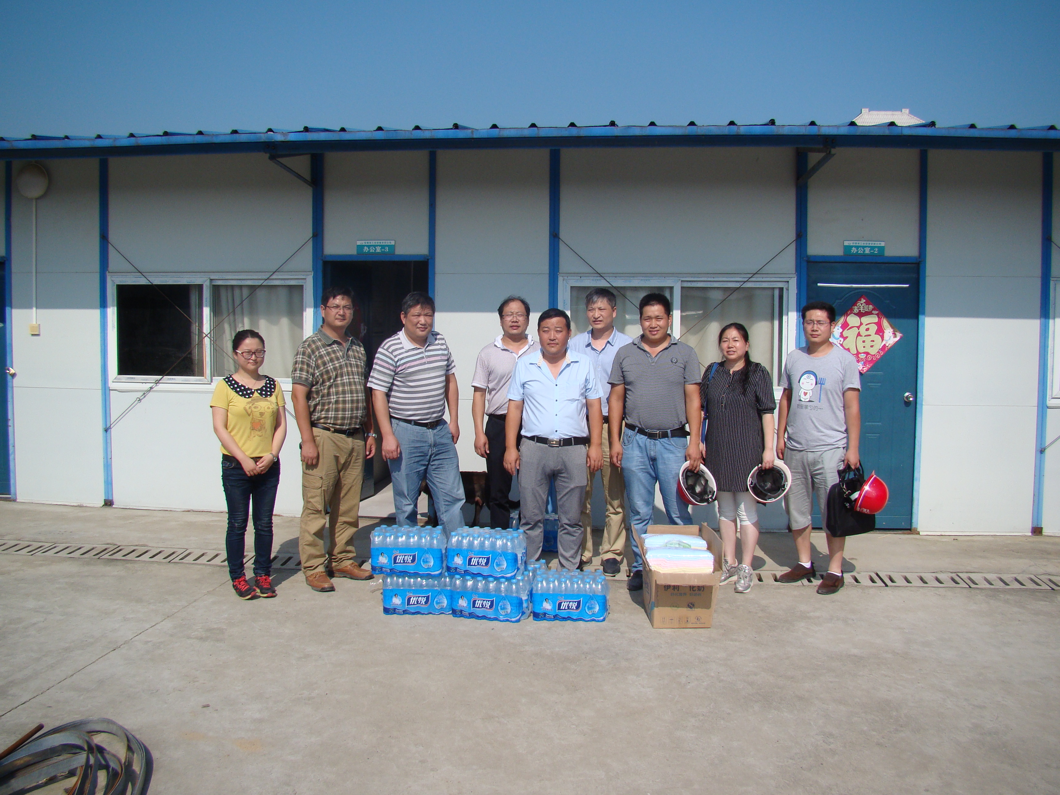 近日,正值高溫酷暑時(shí)節(jié),又是建筑施工旺季,為保障職工的安全與身心健康,從7月29日開始,由公司領(lǐng)導(dǎo)帶隊(duì),分別深入濱湖中心1#-3#樓空調(diào)系統(tǒng)工程、廬陽工投工業(yè)科技有限公司工投創(chuàng)智天地A區(qū)一期消防工程、華冶濱湖萬象城公館消防工程、安建大廈辦公區(qū)室內(nèi)裝飾裝修工程、皖北藥業(yè)股份有限公司微生物藥物生產(chǎn)基地建設(shè)項(xiàng)目二期設(shè)備電氣安裝工程等項(xiàng)目,為高溫下奮戰(zhàn)在施工一線的員工們送去絲絲“清涼”,鼓舞士氣。
