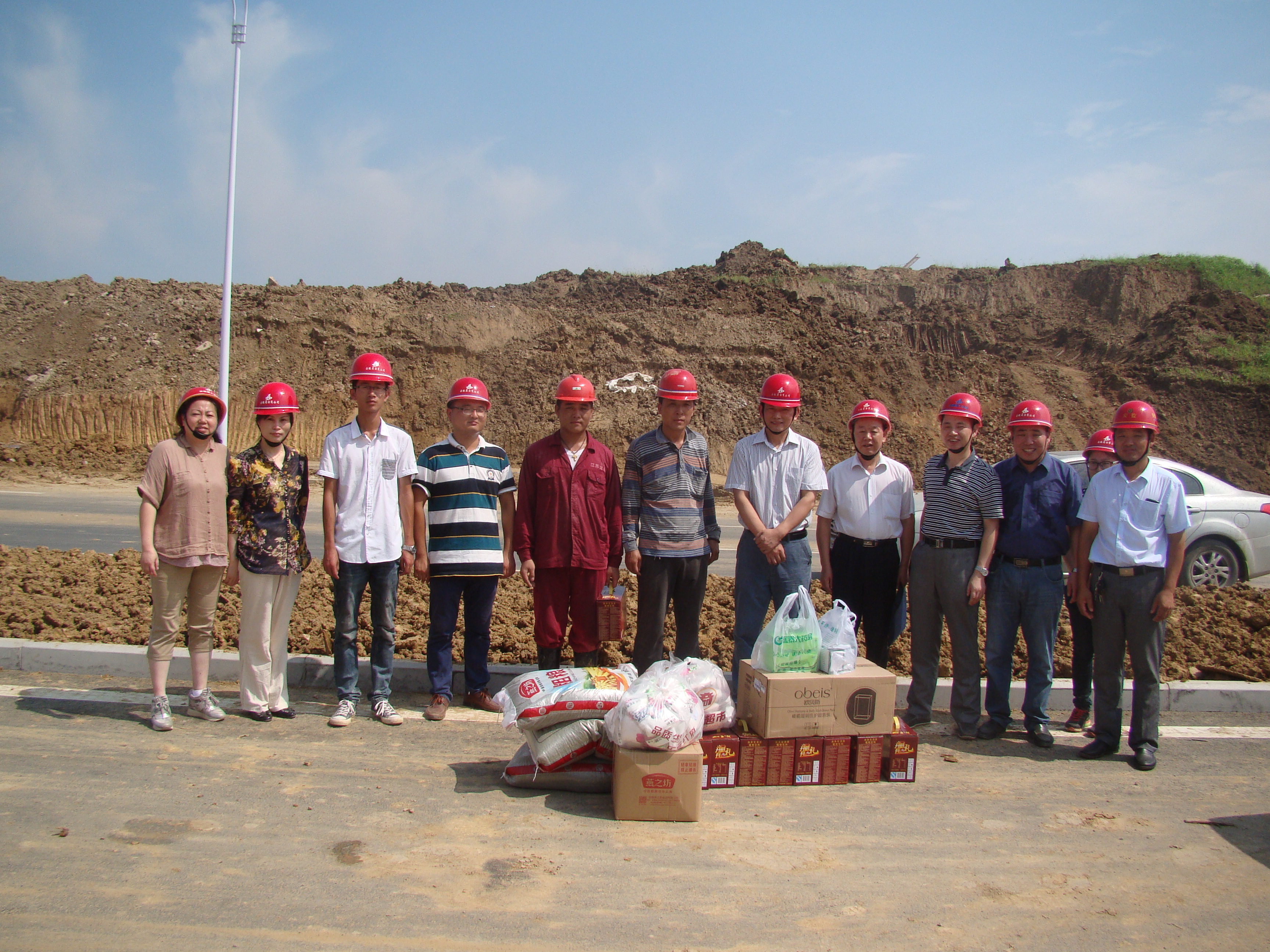 牛書記一行仔細查看了項目施工進展情況,并聽取了第一分公司經(jīng)理陳長征對該項目施工情況的介紹。高溫下,施工現(xiàn)場的蒸汽管道焊接工作仍然緊張有序的開展著,焊接施工人員蹲在將近3米深的坑道內(nèi)作業(yè),狹小的空間、炙熱的太陽、露天的管道,他們的臉上早已滿是汗水,衣服全部濕透。領導們對大家在烈日下?lián)]汗作業(yè)、不畏艱辛的敬業(yè)精神表示贊揚。隨后將綠豆、白糖、藥品、毛巾、洗發(fā)水、飲料等防暑降溫物品分別發(fā)放到一線員工的手中。當牛書記聽說項目現(xiàn)場還有新來大學生時,對大學生進行了問候,并希望大學生們可以在項目上得到鍛煉和成長。