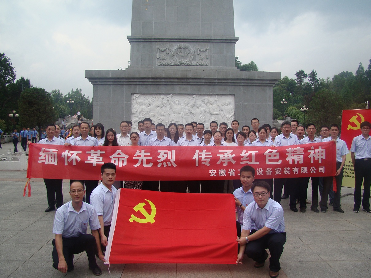 為隆重紀(jì)念中國共產(chǎn)黨成立96周年,喜迎黨的十九大,進一步推進“兩學(xué)一做”學(xué)習(xí)教育常態(tài)化制度化,深入開展“講政治、重規(guī)矩、作表率”專題教育,激勵廣大黨員堅定理想信念,繼承和發(fā)揚黨的光榮傳統(tǒng)和優(yōu)良作風(fēng)。7月7日,安徽安裝公司組織機關(guān)全體黨員赴金寨縣烈士紀(jì)念館開展“緬懷革命先烈,傳承紅色精神”黨員主題活動日。公司黨委書記胡六中,紀(jì)委書記李寬旭、副總經(jīng)理李原以及機關(guān)黨員同志共50余人參加了活動。