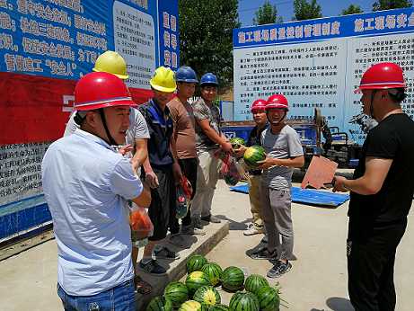 6月18日一大早,項目負責人攜管理人員,帶著粽子、西瓜、白糖等慰問品,為奮斗在一線的工人帶去一份份節(jié)日的問候和祝福,并叮囑大家規(guī)范操作,遠離三違,安全生產(chǎn)。