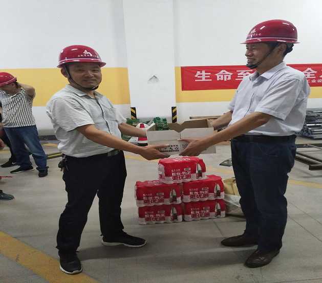 7月23日,第一分公司黨支部書記胡迎東、分管生產(chǎn)副經(jīng)理魯會、分管安全副經(jīng)理李多德、一分公司工會副主席鄭佳及相關(guān)部門負(fù)責(zé)人來到省行政中心提升改造項目部,為現(xiàn)場員工發(fā)放了茶葉、礦泉水、花露水等防暑降溫物品,把清涼送到了施工一線,把關(guān)懷送到員工心中!大家紛紛表示:雖然在屋頂露天施工酷熱難耐,但有分公司領(lǐng)導(dǎo)的關(guān)懷,一定能克服高溫環(huán)境帶來的困難,堅守崗位,苦干實干,保質(zhì)保量地按時完成施工任務(wù)。