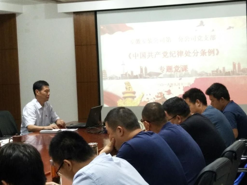 9月11日,第一分公司黨支部開展“黨支部書記上黨課”主題黨日活動(dòng)。分公司黨支部書記胡迎東以新修訂的《中國(guó)共產(chǎn)黨紀(jì)律處分條例》為主題,采用PPT的形式為全體黨員、分公司領(lǐng)導(dǎo)班子成員、機(jī)關(guān)部門負(fù)責(zé)人、在肥項(xiàng)目經(jīng)理上了一堂生動(dòng)的黨課。
