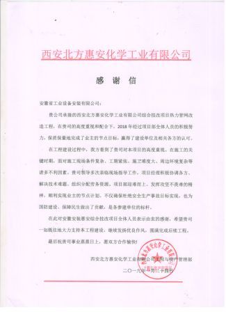 近日,安徽安裝承建的西安北方惠安化學(xué)工業(yè)有限公司綜合技改項(xiàng)目熱力管網(wǎng)改造工程,經(jīng)項(xiàng)目部全體人員共同努力,保質(zhì)保量地完成了業(yè)主的節(jié)點(diǎn)目標(biāo),贏得了業(yè)主高度認(rèn)可和好評(píng),被業(yè)主授予“優(yōu)秀項(xiàng)目部”榮譽(yù)稱號(hào),成為各參建單位的標(biāo)桿,業(yè)主特別頒發(fā)了榮譽(yù)證書和感謝信感謝項(xiàng)目全體人員所作出的貢獻(xiàn),