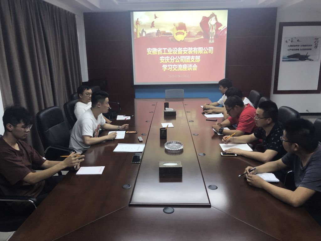 6月5日下午,安慶分公司團支部在分公司會議室召開2019年第二季度工作學習交流會,分公司全體團員青年參加了會議,會議由團支部書記朱翔主持。