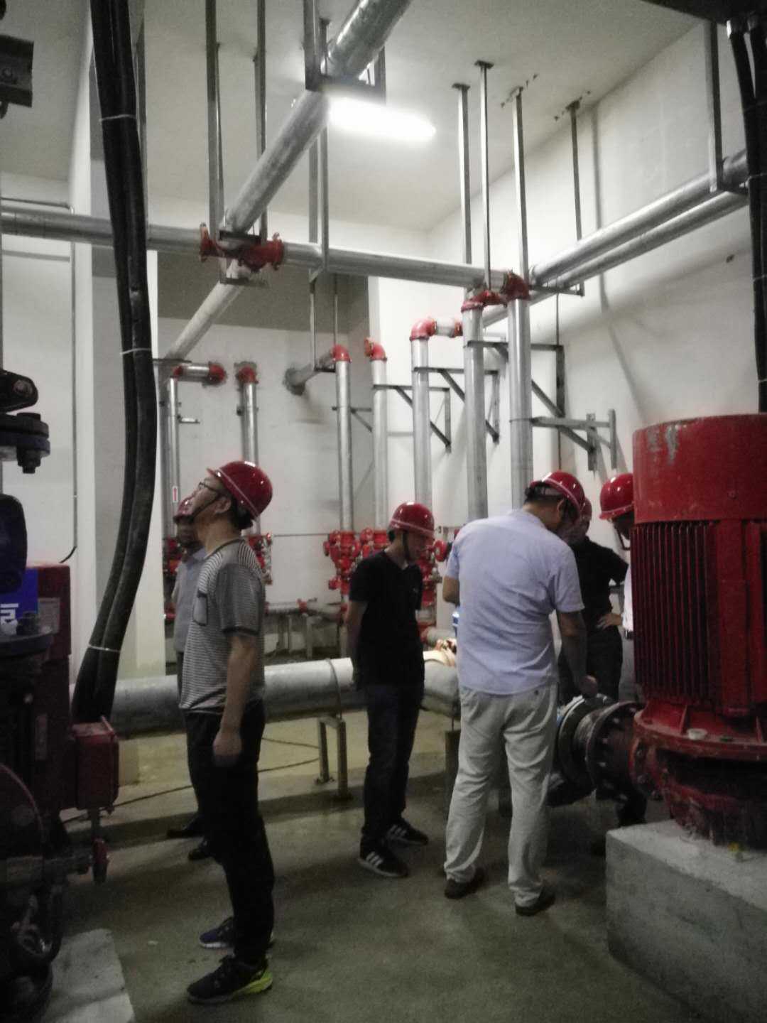 檢查組到達(dá)工地后,首先來到施工現(xiàn)場實(shí)體查驗(yàn)了地下車庫消火栓系統(tǒng)、噴淋系統(tǒng)、通風(fēng)系統(tǒng)、火災(zāi)自動(dòng)報(bào)警系統(tǒng)的施工安裝質(zhì)量,對施工班組操作是否規(guī)范、安全防護(hù)用品佩戴使用是否正確、現(xiàn)場材料存儲、堆放標(biāo)識是否規(guī)范等方面進(jìn)行了重點(diǎn)檢查。并對地下車庫、泵房的管道和設(shè)備安裝存在的問題和不足提出意見和建議,項(xiàng)目部人員認(rèn)真聽取、詳細(xì)作好記錄,與檢查組進(jìn)行了深入的現(xiàn)場交流。