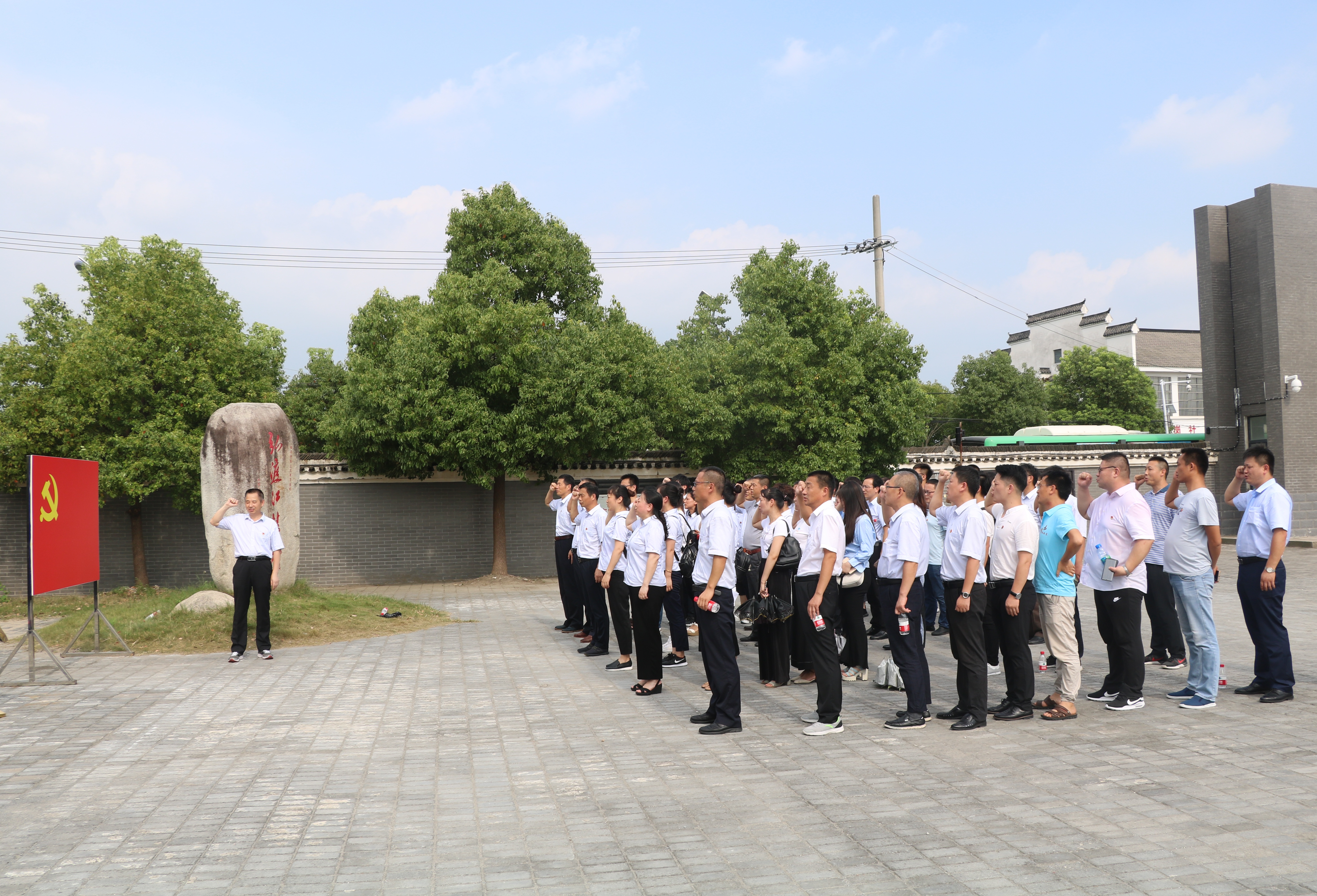 大家首先觀(guān)看了關(guān)于渡江戰(zhàn)役總前委舊址紀(jì)念館的紀(jì)錄片。隨后黨委書(shū)記、董事長(zhǎng)胡六中帶領(lǐng)全體黨員在黨旗面前重溫入黨誓詞。