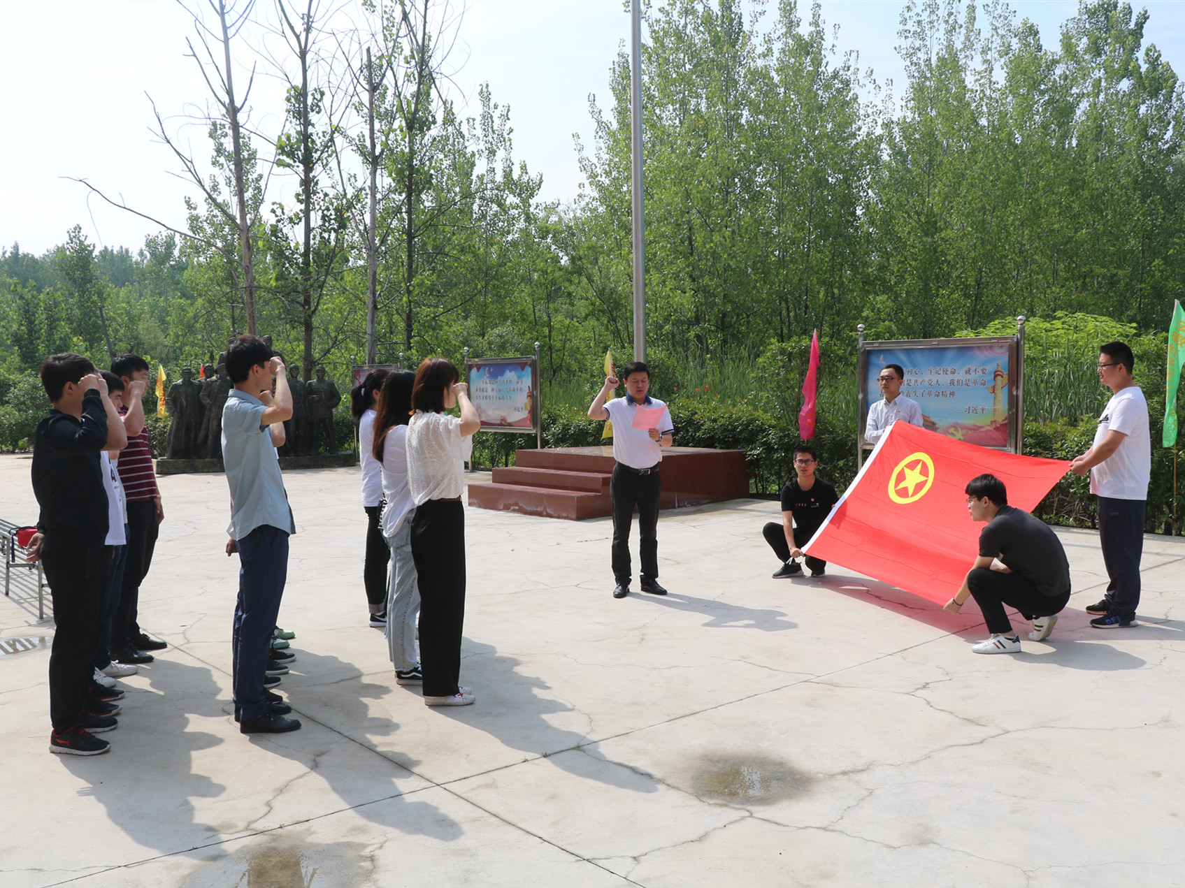 所有團(tuán)員首先在安徽安裝團(tuán)委書(shū)記王偉的帶領(lǐng)下,面對(duì)團(tuán)旗,重溫入團(tuán)誓詞。