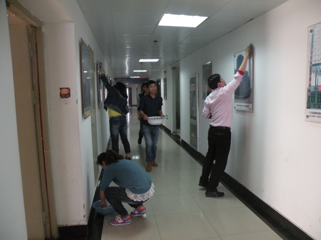 331日下午,公司團(tuán)委組織機(jī)關(guān)團(tuán)員開(kāi)展義務(wù)勞動(dòng),對(duì)公司所在九華國(guó)際大廈15、16樓走廊兩側(cè)的宣傳圖畫(huà)、宣傳欄以及消防櫥窗進(jìn)行徹底擦洗。擦洗走廊兩側(cè)一幅幅精品工程,感知著公司發(fā)展歷程,“小伙伴們”心中油然而生“我為省安人而驕傲”!