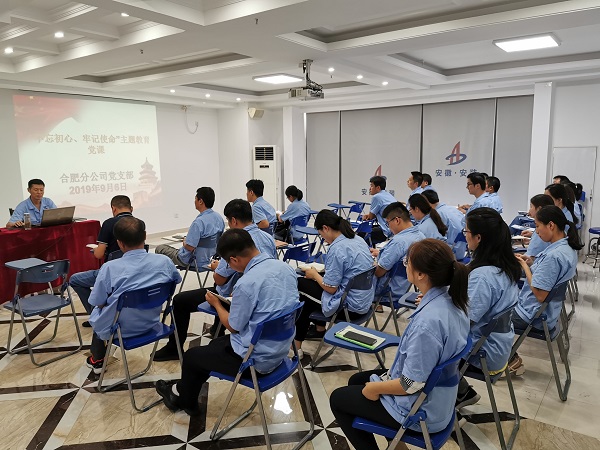 根據(jù)公司黨委“不忘初心、牢記使命”主題教育工作部署,9月6日下午,合肥分公司黨支部召開“不忘初心、牢記使命”主題教育黨課報告會,黨支部書記胡迎東作了題為《“不忘初心、牢記使命”主題教育成果推動合肥分公司發(fā)展》的黨課報告。分公司領(lǐng)導(dǎo)班子成員、全體黨員、機(jī)關(guān)工作人員參與會議聽取了報告。