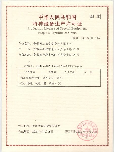 特種設(shè)備安裝改造維修許可證(鍋爐)