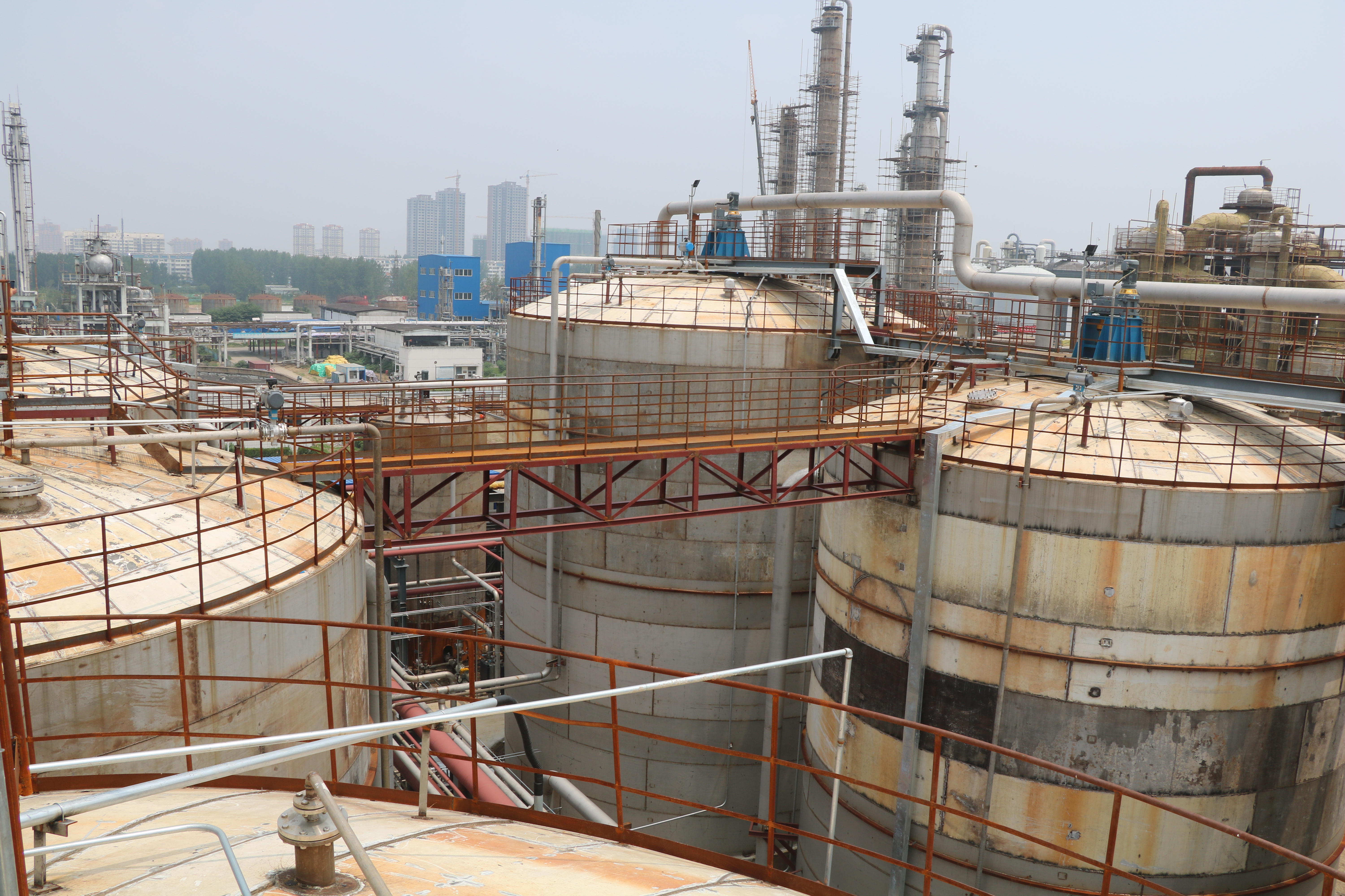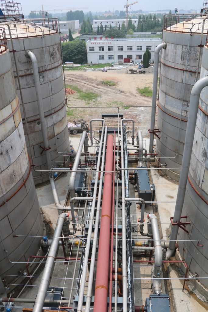 201810月,蚌埠分公司中標(biāo)宿州中糧無水乙醇搬遷技改項目。該項目為發(fā)酵工序區(qū)域以及酒精罐區(qū)、混配站裝置區(qū)域裝置利舊設(shè)備拆遷(保護性拆除)轉(zhuǎn)運(含各類罐22臺、離心機組3套)非標(biāo)設(shè)備制作安裝,設(shè)備總重量約1055噸,工藝管道約4500米及電氣儀表專業(yè)施工。工程總造價1584萬元。