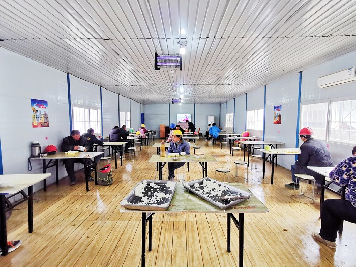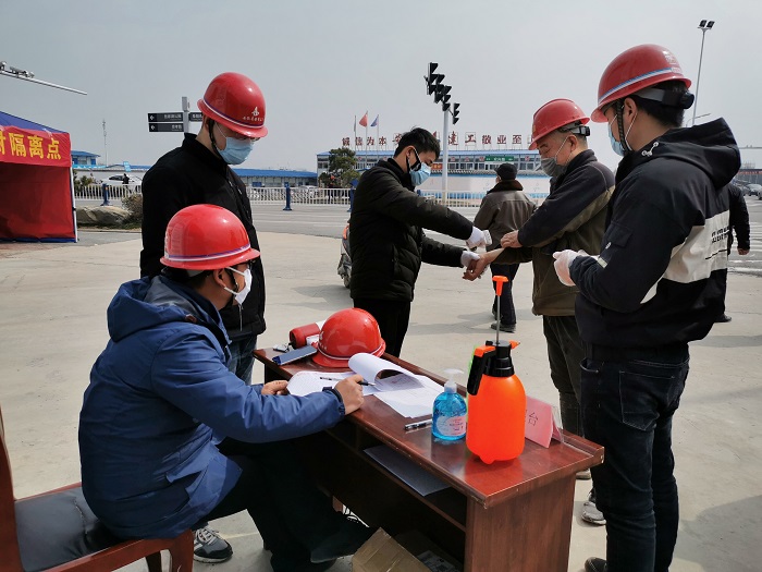 看得見的防疫配備,還有落在實處的防疫舉措。項目部開展員工返崗前14天健康在線管理,每位員工每日體溫、身體狀況、居住地、活動軌跡等信息,每天線上打卡、全員覆蓋。實行“生產(chǎn)網(wǎng)格化、吃住軍事化”,員工入“格”后,現(xiàn)場、宿舍、食堂“三點一線”管理,餐廳座位隔單排、菜飯統(tǒng)一打、就餐時間拉長,衛(wèi)生區(qū)域增加管理人員,人員分類管理,將返崗復工人員控制在最小單元,確保安全。同時,生產(chǎn)流程重組,按項目緩急逐步恢復生產(chǎn)。
