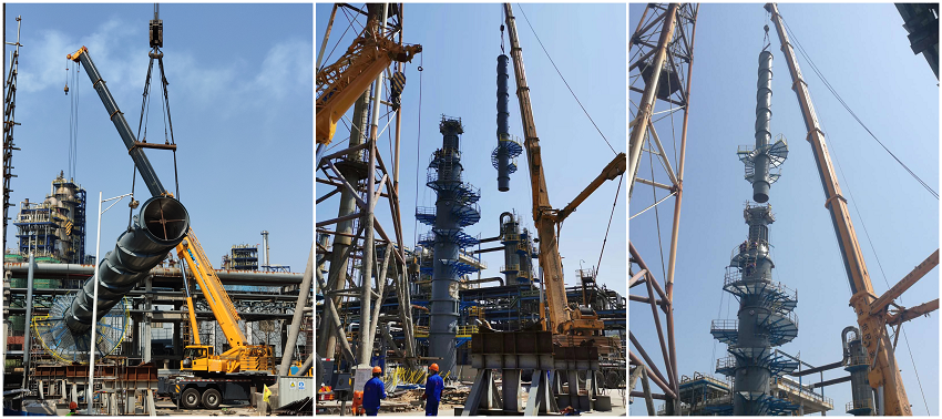 繼3月18日“Ⅰ、Ⅱ硫磺回收裝置增設煙氣后堿洗流程項目”脫硫塔下段吊裝成功,安慶石化項目部一鼓作氣,爭分奪秒,于3月20日下午成功完成脫硫塔上段吊裝任務。至此,安慶石化項目部后堿洗項目為之關鍵的吊裝任務圓滿落下帷幕。