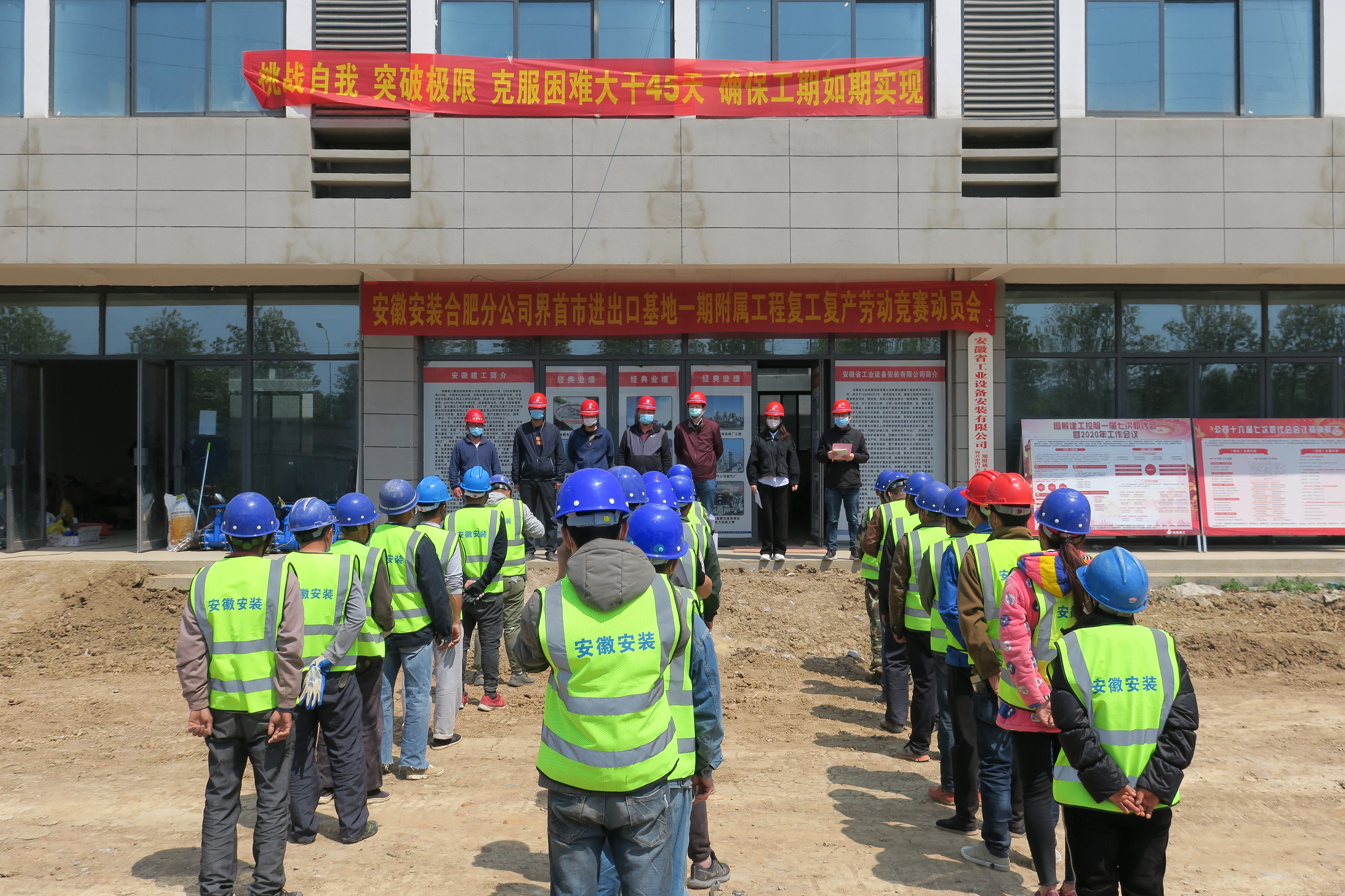 4月13日上午,合肥分公司界首出口企業(yè)培育基地一期工程項(xiàng)目召開(kāi)“大干45天”勞動(dòng)競(jìng)賽動(dòng)員會(huì)。分公司黨支部書(shū)記胡迎東出席會(huì)議并講話,分公司安全管理部主任孔微明主持會(huì)議,項(xiàng)目部全體管理人員及施工班組參會(huì)。