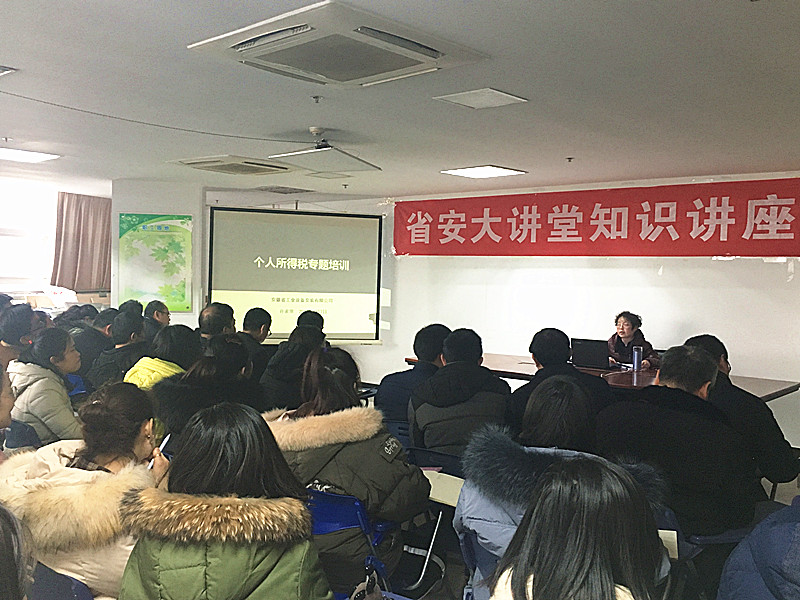 2月21日下午“省安大講堂”—個人所得稅專題培訓在職工之家開課。本次培訓由財務(wù)部經(jīng)理許素寒授課,公司機關(guān)、分公司相關(guān)人員共80余人參加。