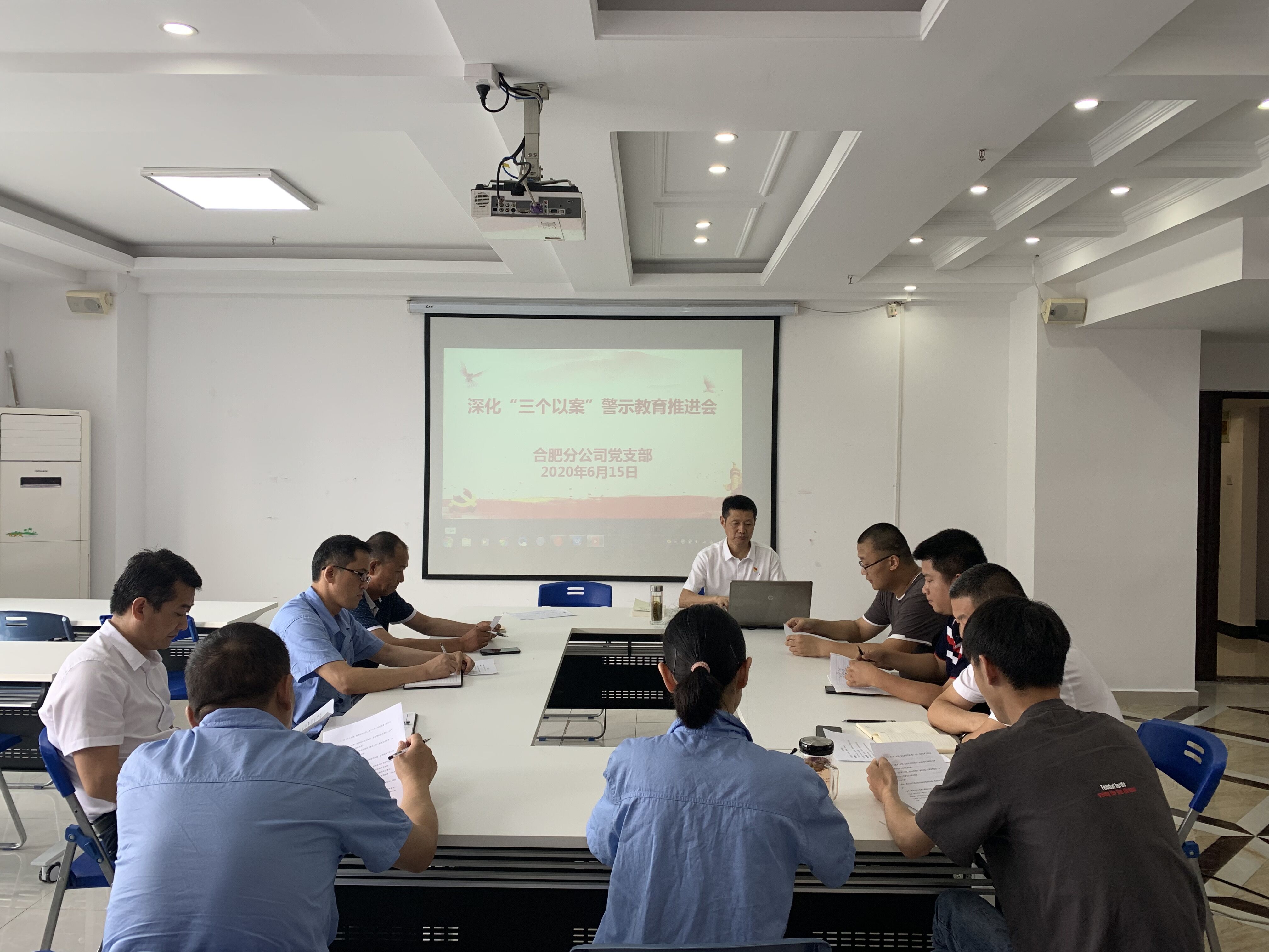 6月15日下午,合肥分公司黨支部召開深化“三個(gè)以案”警示教育推進(jìn)會(huì),黨支部書記胡迎東主持會(huì)議。分公司領(lǐng)導(dǎo)班子、機(jī)關(guān)全體黨員參會(huì),項(xiàng)目部黨員以視頻會(huì)議形式同步參加。