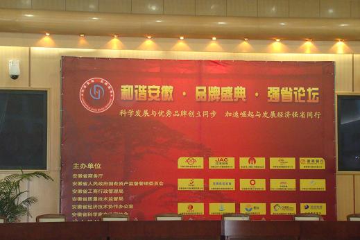為推進品牌強省戰(zhàn)略,加快安徽省品牌的發(fā)展步伐,實現(xiàn)安徽經(jīng)濟全面和諧發(fā)展,由安徽省商務廳、安徽省人民政府國有資產(chǎn)監(jiān)督管理委員會、安徽省工商行政管理局、安徽省質量技術監(jiān)督局、安徽省經(jīng)濟技術協(xié)作辦公室和安徽省科學家企業(yè)家協(xié)會聯(lián)合舉辦的“和諧安徽·品牌盛典·強省論壇”活動,于2009年7月28日在省人大會議中心隆重召開。本次論壇以“科學發(fā)展與優(yōu)秀品牌創(chuàng)立同步,加速崛起與發(fā)展經(jīng)濟強省同行”為主題。公司總經(jīng)理王軍邦先生應邀參加論壇活動。