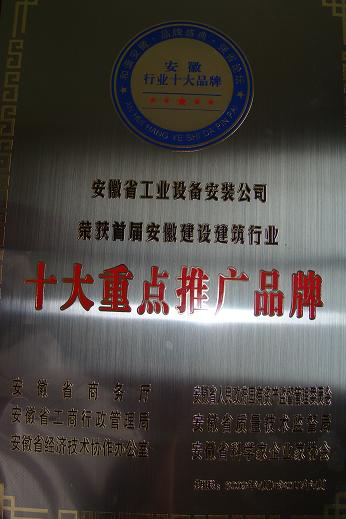 公司榮獲“首屆安徽建設建筑行業(yè)十大重點推廣品牌”