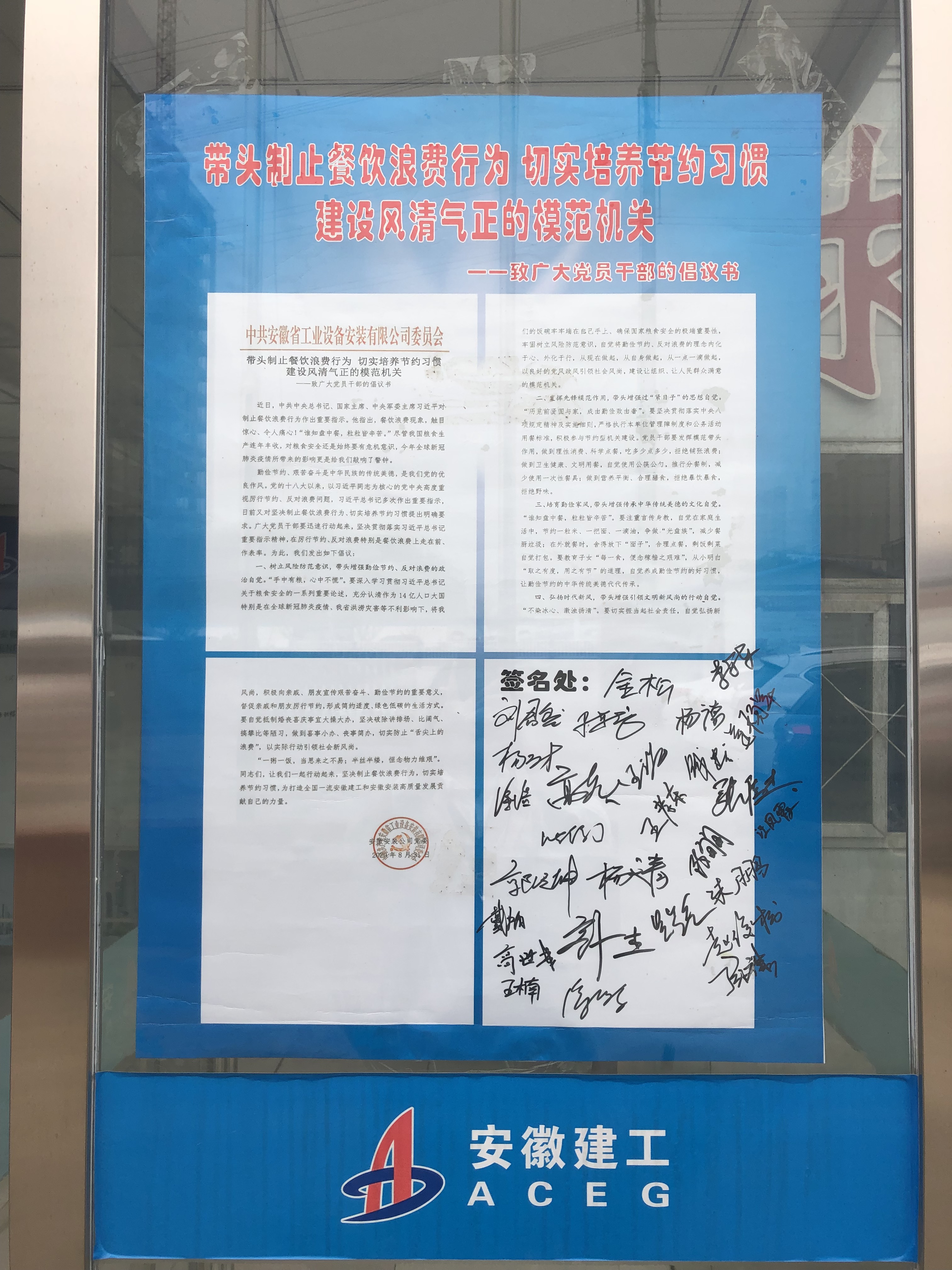 會后,全體項目部職工在制止餐飲浪費(fèi)行為切實培養(yǎng)節(jié)約習(xí)慣的倡議書上紛紛簽名承諾。
