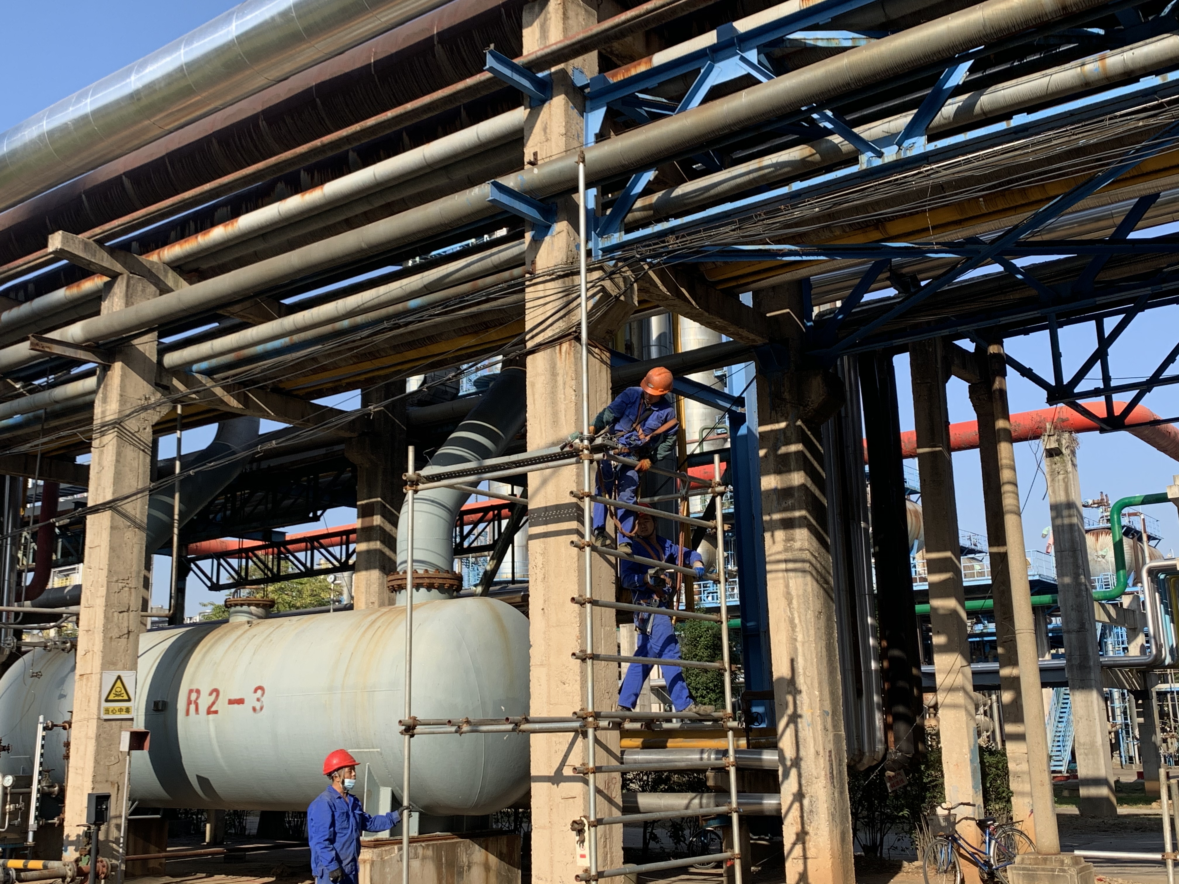 安慶石化低二腈線(xiàn)隱患處理項(xiàng)目在茅青路液化氣罐路口低Ⅱ線(xiàn)分支起至腈綸西圍墻內(nèi)界區(qū),對(duì)原有管道拆除換新。目前施工各項(xiàng)工作均已完成并驗(yàn)收,相關(guān)作業(yè)物資已經(jīng)清理完畢,做好拆除腳手架前的各項(xiàng)準(zhǔn)備,按自上而下先裝者后拆,后裝者先拆,逐步拆除,一步一清。