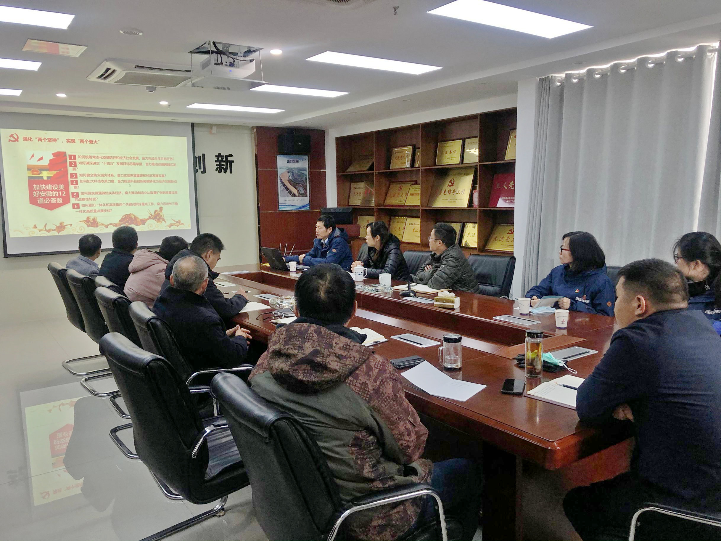 11月24日上午,合肥分公司黨支部書記胡迎東赴蚌埠分公司作題為《加強(qiáng)黨建與生產(chǎn)經(jīng)營(yíng)的深度融合——以高質(zhì)量的黨建引領(lǐng)分公司高質(zhì)量的發(fā)展》專題黨課,分公司領(lǐng)導(dǎo)班子成員、全體黨員、各科室負(fù)責(zé)人及項(xiàng)目經(jīng)理參加本次黨課學(xué)習(xí)。