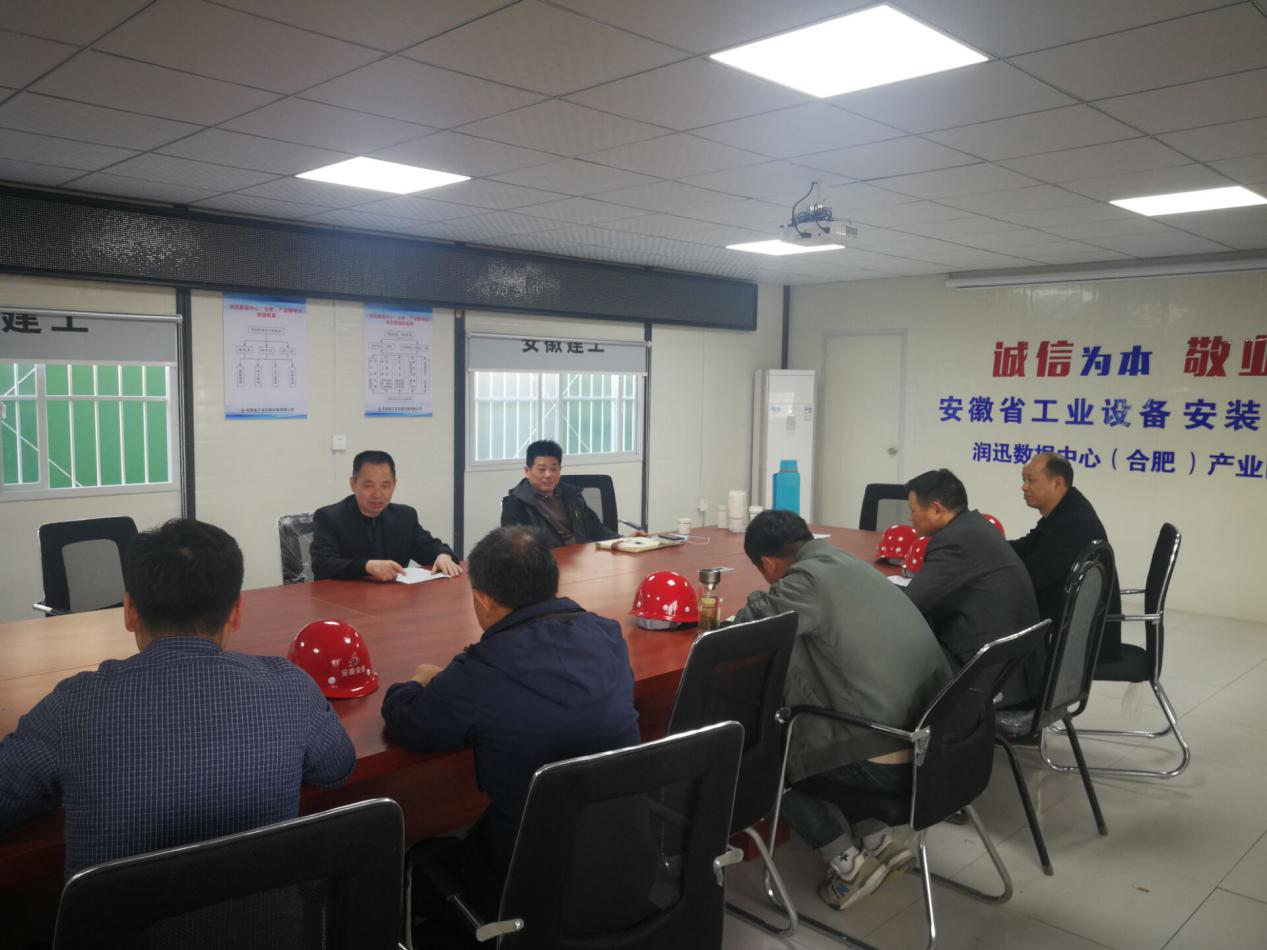 2月19日,公司黨委書記、董事長胡六中赴房建(裝飾)分公司潤迅數(shù)據(jù)中心(合肥)產(chǎn)業(yè)園項目調(diào)研慰問,分公司副經(jīng)理、工程部經(jīng)理、項目部職工參加調(diào)研。