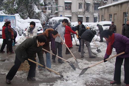 17日一早,在公司領(lǐng)導(dǎo)的親自帶領(lǐng)下,公司機(jī)關(guān)全體員工踴躍參與,懷著一份熱情,積極鏟雪除冰。經(jīng)過近兩個(gè)小時(shí)的奮戰(zhàn),將公司辦公樓及生活區(qū)大院的主干道積雪和冰塊鏟掃干凈,確保廣大職工和住戶的出行安全。