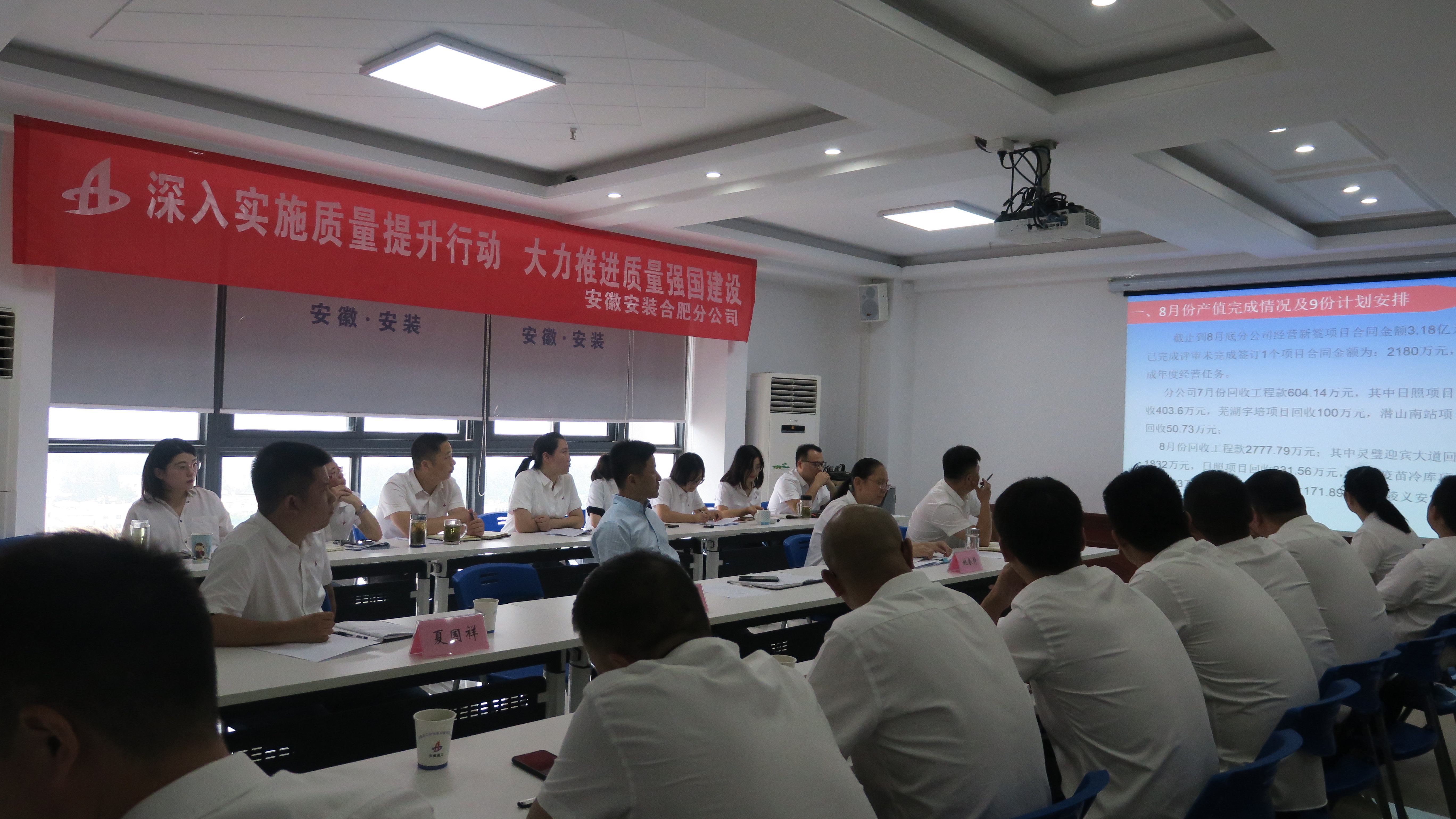 9月4日下午,合肥分公司召開了2021年9 月份生產(chǎn)、安全、經(jīng)營暨“質(zhì)量月”動(dòng)員會(huì)議。分公司領(lǐng)導(dǎo)班子成員、所屬各項(xiàng)目經(jīng)理、機(jī)關(guān)全體員工40余人參會(huì),會(huì)議由工程管理部副主任馮慶捻主持。