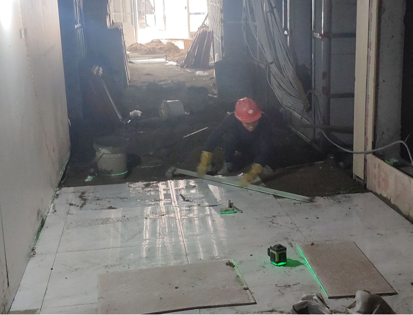 醫(yī)技樓走廊地磚鋪設(shè)施工