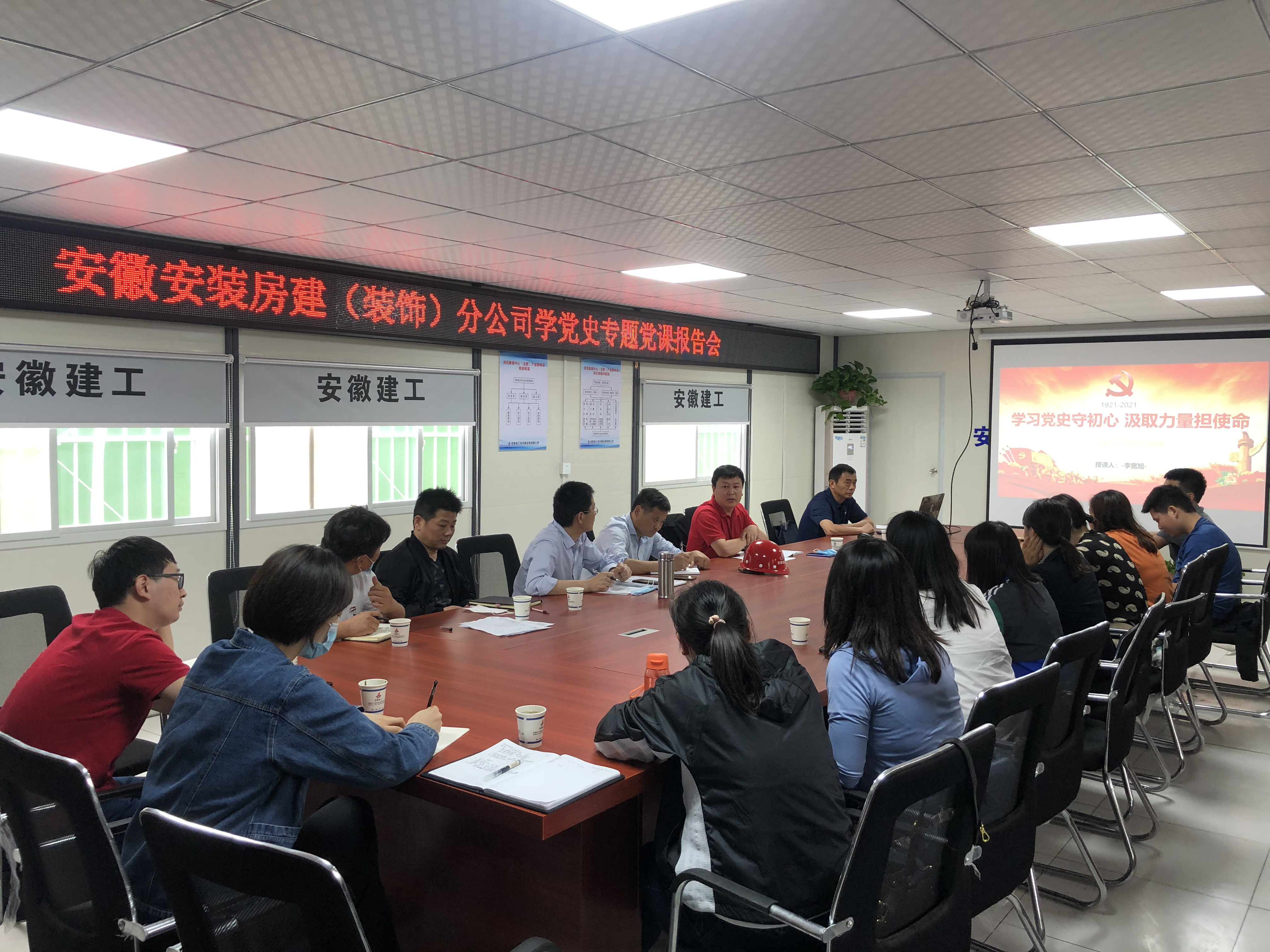 5月21日下午,根據(jù)公司黨委黨史學習教育計劃安排,公司紀委書記、工會主席李寬旭赴房建(裝飾)分公司潤迅數(shù)據(jù)中心(合肥)產(chǎn)業(yè)園項目作基層黨史學習教育專題黨課報告,房建(裝飾)分公司機關人員、項目一線職工、團員青年等30余人參加了會議。