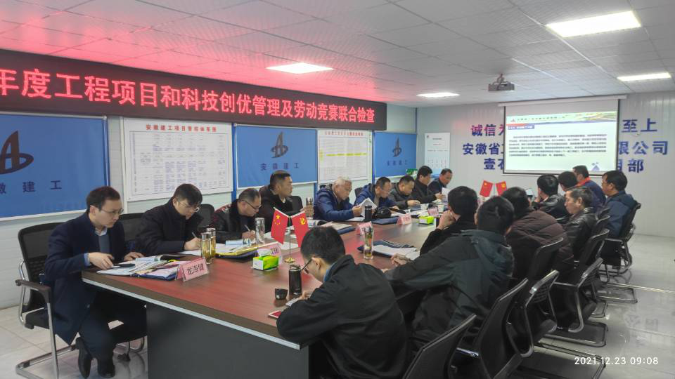 根據(jù)集團公司關于開展2021年工程項目管理、科技創(chuàng)優(yōu)管理和勞動競賽聯(lián)合檢查工作的安排,12月23日上午,集團公司工程管理部(安全監(jiān)察局)督查員范毓慶率項目管理、科技創(chuàng)優(yōu)管理和勞動競賽專家組赴安徽安裝房建(裝飾)分公司壹石通項目開展綜合檢查工作,公司副總經(jīng)理趙伯平,工程管理部、安全管理部、總工辦等部門負責同志參加本次檢查。