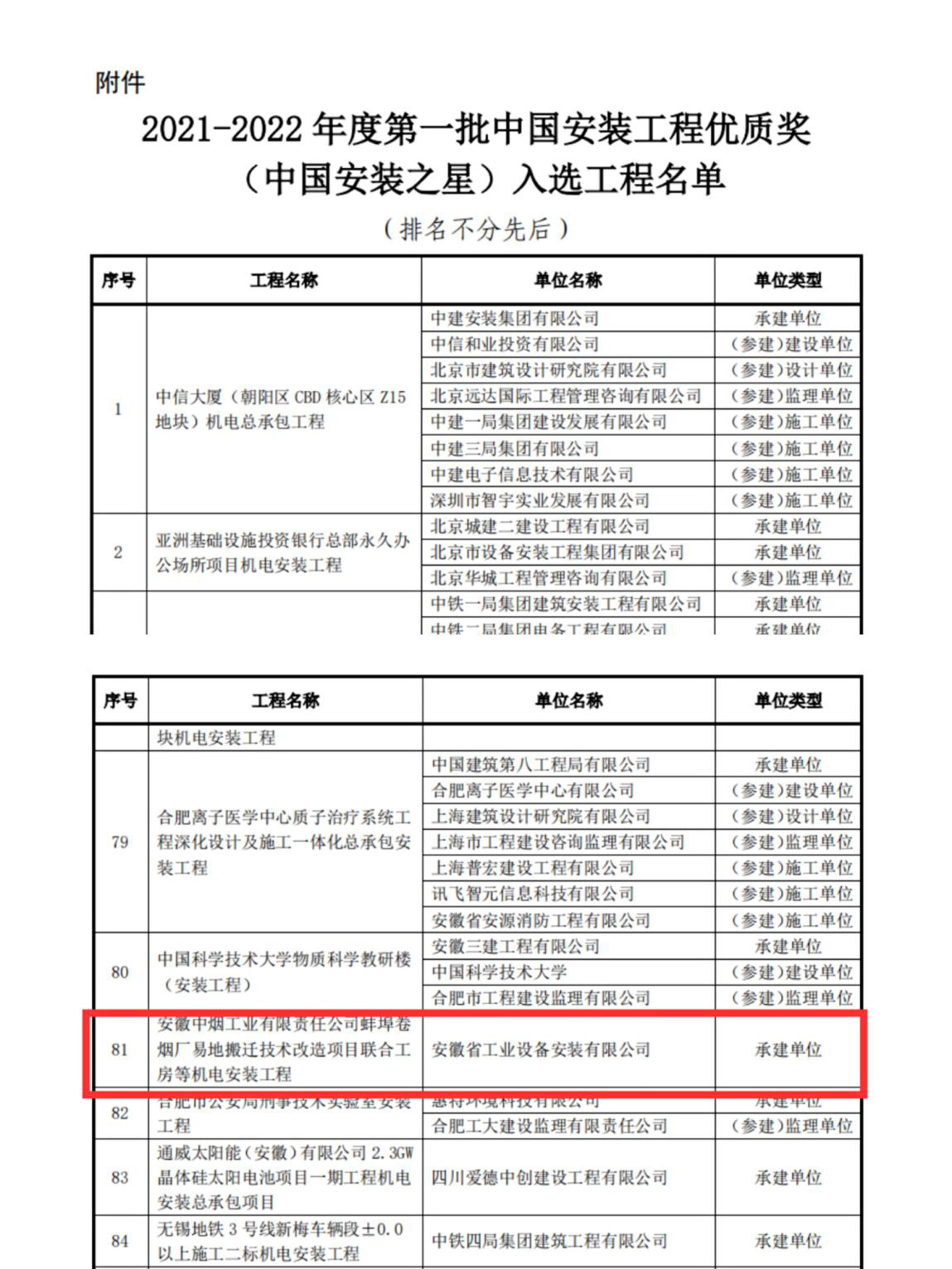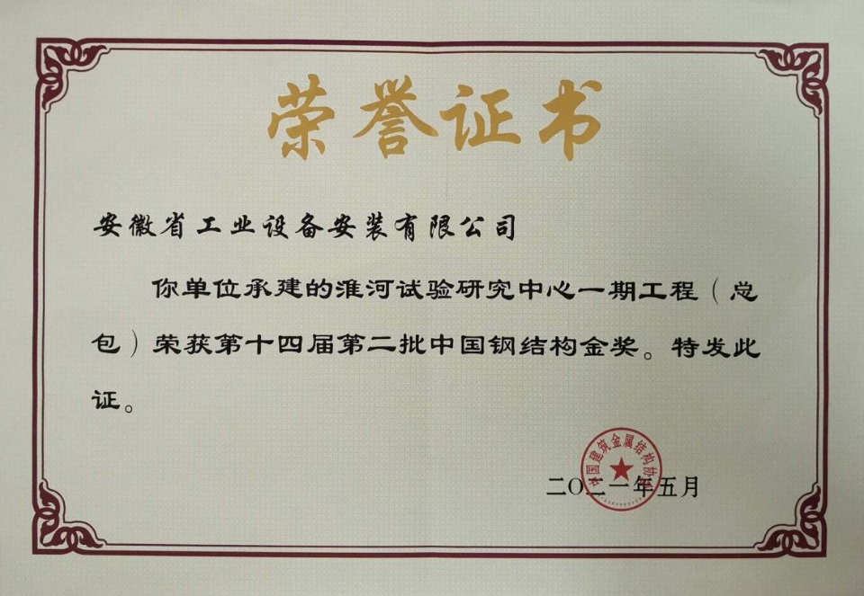 2021年公司首次一年內(nèi)獲得兩項(xiàng)國家級優(yōu)質(zhì)工程獎(jiǎng),即中國鋼結(jié)構(gòu)金獎(jiǎng)、中國安裝工程優(yōu)質(zhì)獎(jiǎng)(安裝之星)。