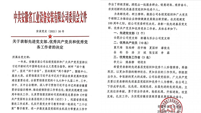 今年以來,趙永峰同志以黨史學(xué)習(xí)教育和慶祝中國共產(chǎn)黨成立100周年為契機,以集團黨建“領(lǐng)航計劃”為抓手,創(chuàng)新型開展支部黨建工作,多措并舉,勠力同心,真抓實干,積極探索項目黨建工作新載體、新途徑,以深入開展創(chuàng)先爭優(yōu)“黨員示范崗”等主題實踐活動為載體,以“我為群眾辦實事”實踐活動帶領(lǐng)支部班子成員創(chuàng)造性地開展一系列黨建工作,用實際行動踐行初心使命,用真抓實干檢驗黨史學(xué)習(xí)教育成效。積極發(fā)揮了“一名黨員就是一面旗幟,一個支部就是一座堡壘”的重要作用。他所在合肥分公司被建工集團授予“先進(jìn)集體”光榮稱號,合肥分公司黨支部被安徽省工業(yè)設(shè)備安裝有限公司黨委評為“先進(jìn)黨支部”。趙永峰同志榮獲安徽建工集團“勞動模范”等多項榮譽稱號。
