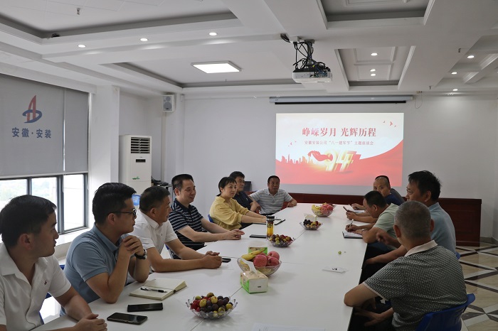 2021年8月1日是中國人民解放軍建軍94周年,8月2日,安徽安裝公司組織召開了“八一”建軍節(jié)主題座談會(huì)。座談會(huì)由公司工會(huì)副主席、人力資源部經(jīng)理王敏主持,黨委書記、董事長胡六中出席,10名公司在職的退伍軍人參加了座談會(huì)。