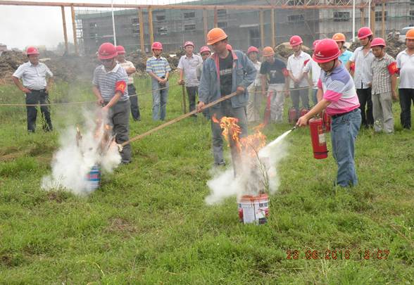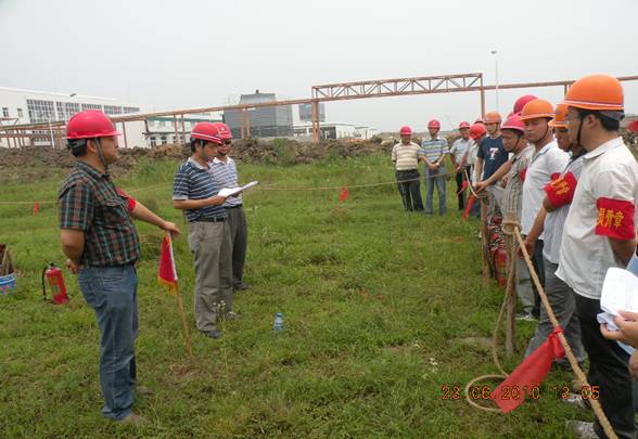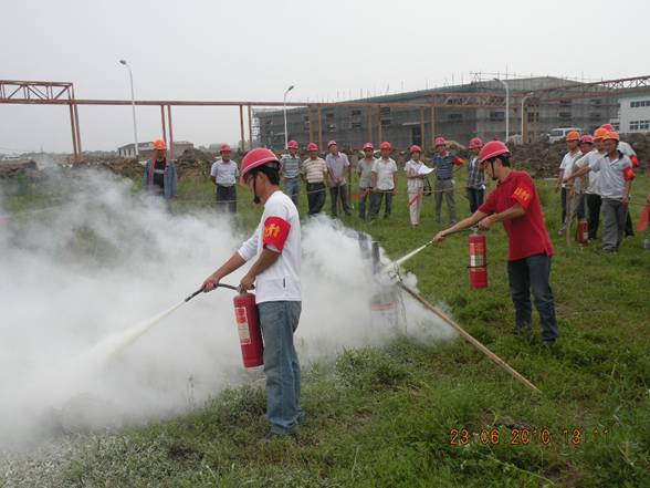 為全面開展好“全國安全生產(chǎn)月”應(yīng)急預(yù)案演練周活動,切實提高企業(yè)應(yīng)對突發(fā)火災(zāi)事故處理能力和水平,2010年6月23日,公司保衛(wèi)處和生產(chǎn)處牽頭在肥東豐樂農(nóng)化中間體項目現(xiàn)場進行了一次火災(zāi)事故應(yīng)急演練,副總經(jīng)理劉安俊擔任總指揮,各項目部均派人參加。