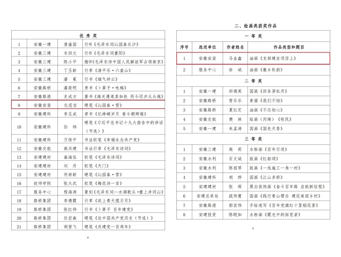 安徽安裝公司在集團“翰墨寫初心 丹青頌黨恩”職工書畫攝影作品展中喜獲佳績