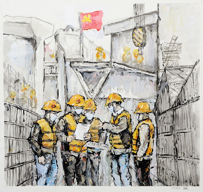 繪畫類:馬金鑫——油畫《支部建在項目上》