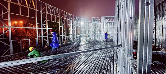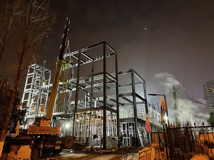 自11月初接到項(xiàng)目任務(wù)以來(lái),面對(duì)一個(gè)月完成三層結(jié)構(gòu)方艙醫(yī)院主體機(jī)構(gòu)、內(nèi)部安裝、室外裝飾的極限工期,安徽安裝公司高度重視、精心組織、科學(xué)安排、迎難而上,全力以赴加快工程建設(shè),期間,公司領(lǐng)導(dǎo)多次前往項(xiàng)目現(xiàn)場(chǎng)幫助協(xié)調(diào)解決工程施工中的難點(diǎn)、困難,為項(xiàng)目人員鼓勁加油;公司相關(guān)部門負(fù)責(zé)人駐扎項(xiàng)目一線,指導(dǎo)協(xié)調(diào)內(nèi)部流程、現(xiàn)場(chǎng)施工、外部對(duì)接、質(zhì)量安全等一應(yīng)事務(wù);分公司第一時(shí)間組織精干力量進(jìn)入項(xiàng)目現(xiàn)場(chǎng),梳理現(xiàn)場(chǎng)情況,核對(duì)圖紙清單,進(jìn)行施工準(zhǔn)備。從公司領(lǐng)導(dǎo)到項(xiàng)目一線,安徽安裝公司自上而下以高度的使命感和責(zé)任感,投入到緊張的工程建設(shè)中去。項(xiàng)目管理人員披星戴月,從早上到夜間駐守在項(xiàng)目一線,每日召開工程會(huì)議,討論施工工作進(jìn)展,制定下一步工作計(jì)劃,安排交叉作業(yè)工序。為保障夜間施工安全,項(xiàng)目部安排兩名安全員輪流值守項(xiàng)目現(xiàn)場(chǎng),夜間在項(xiàng)目現(xiàn)場(chǎng)不斷巡查確保施工安全、高效開展。