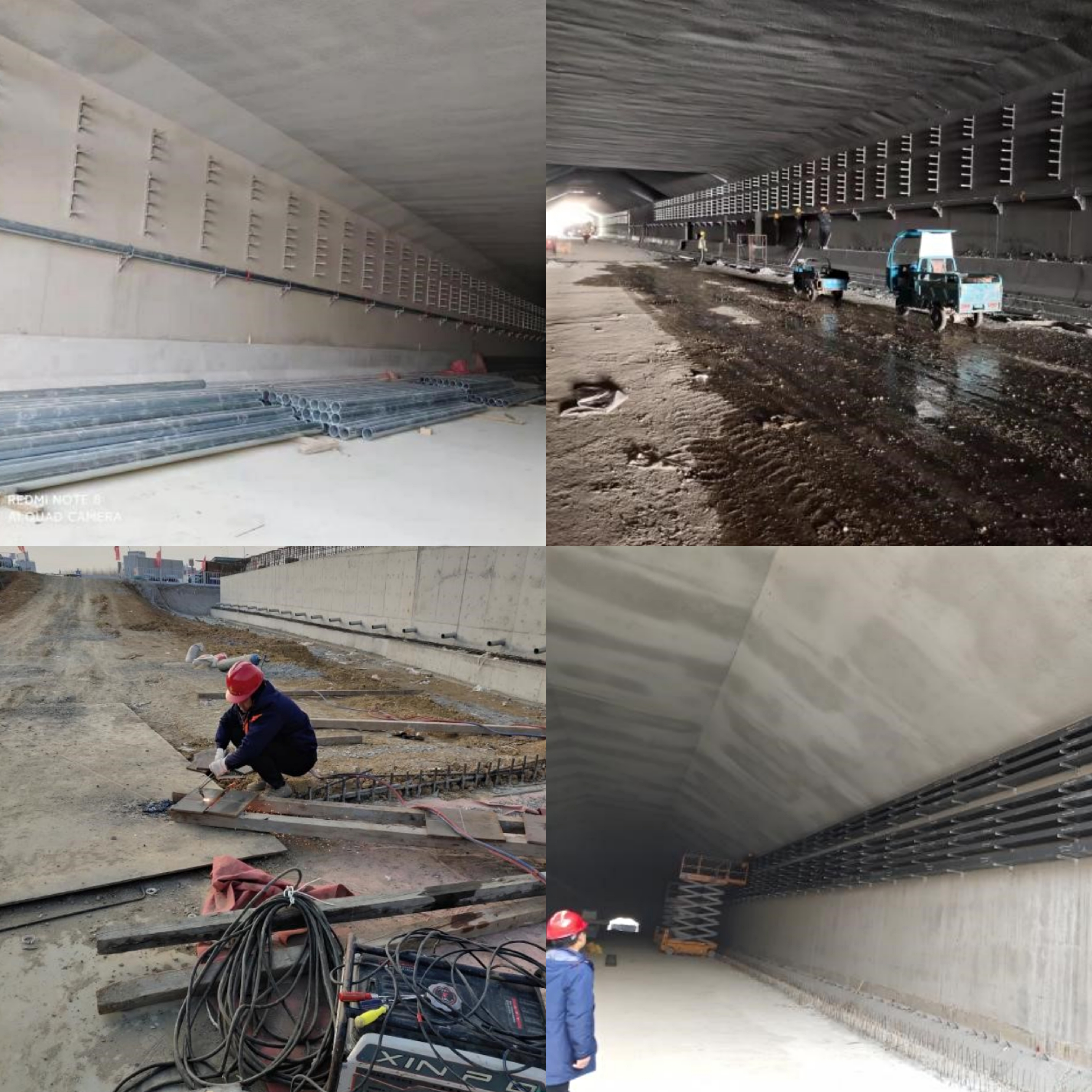 東側(cè)敞口段300多米是完成總包單位下達的“樣板段年前完工”目標任務(wù)的重點實施地段,為了保證施工進度,項目部管理人員靠前指揮,認真分析,研判施工進度,梳理現(xiàn)場存在的問題,共同探討解決的方案,針對隧道作業(yè)面有限,人員進出不便等諸多困難,項目部采取“白加黑”“5+2”,勞務(wù)班組交替作業(yè)的方式,做到人休工地不停歇。項目施工員、安全員充分發(fā)揚“釘子”精神,長時間釘在施工現(xiàn)場,旁站指導(dǎo)及監(jiān)督檢查,確保了鋼板切割、橋架支架的制作與安裝、橋架的安裝、消防管道的安裝等等,各項工作安全快速向前推進。