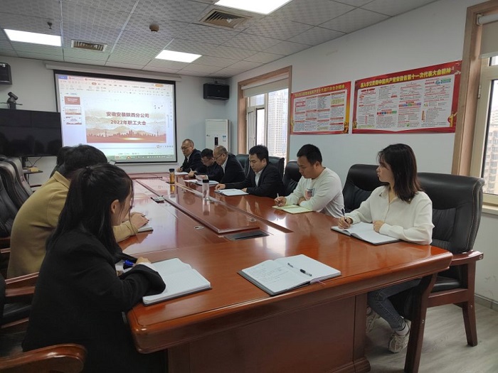 3月18日上午,陜西分公司組織召開2022年度職工大會(huì),分公司領(lǐng)導(dǎo)班子成員、機(jī)關(guān)全體人員共同參會(huì),會(huì)議由分公司黨支部書記江輝主持。