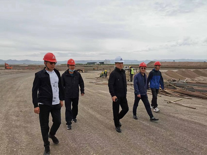 王軍一行到達施工現(xiàn)場后,對項目的疫情防控、施工進度、質(zhì)量控制、施工重難點、安全文明施工管理、勞務(wù)管理等工作進行了詳細的了解。他得知目前有50余輛施工機械,80余名施工人員同時作業(yè),2號中水池于五一節(jié)前已通過五方驗槽后,對項目部的施工管理水平給予高度評價。他強調(diào):托里縣污水處理廠中水回用配套設(shè)施項目是公司打開托里市場的“敲門磚”,是新疆烏蘇分公司“立足烏蘇、輻射周邊”的經(jīng)營成果,項目部管理人員一定要繼續(xù)發(fā)揚安徽建工人“特別能吃苦、特別能戰(zhàn)斗”的工作作風(fēng),團結(jié)奮斗、頑強拼搏,按照合同約定順利完成施工任務(wù),為安裝公司在新疆市場的開拓增光添彩。