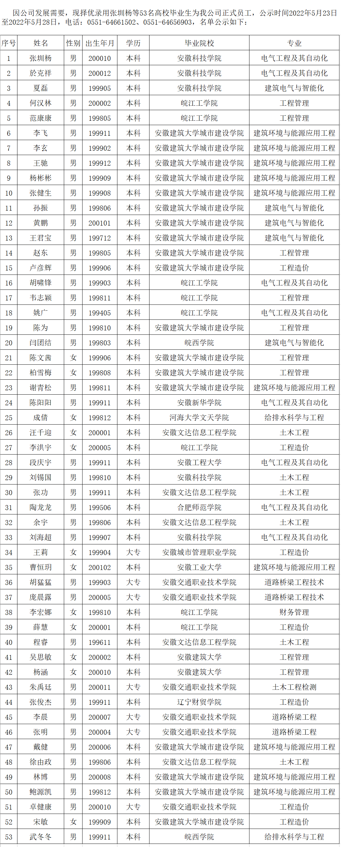 2022高校畢業(yè)生公示