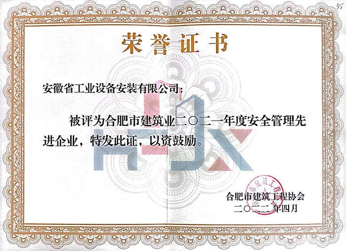 “合肥市優(yōu)秀企業(yè)、單項先進企業(yè)”評選旨在表彰在經(jīng)營管理、質(zhì)量安全、誠信建設、經(jīng)濟效益和社會效益等方面做出突出成績的施工企業(yè)。近年來,公司在省內(nèi)外市場重合同、守信用,綜合實力在安裝行業(yè)處于領先地位,以良好的經(jīng)營業(yè)績、突出的社會貢獻、深入人心的品牌形象獲得了社會各界的認可。