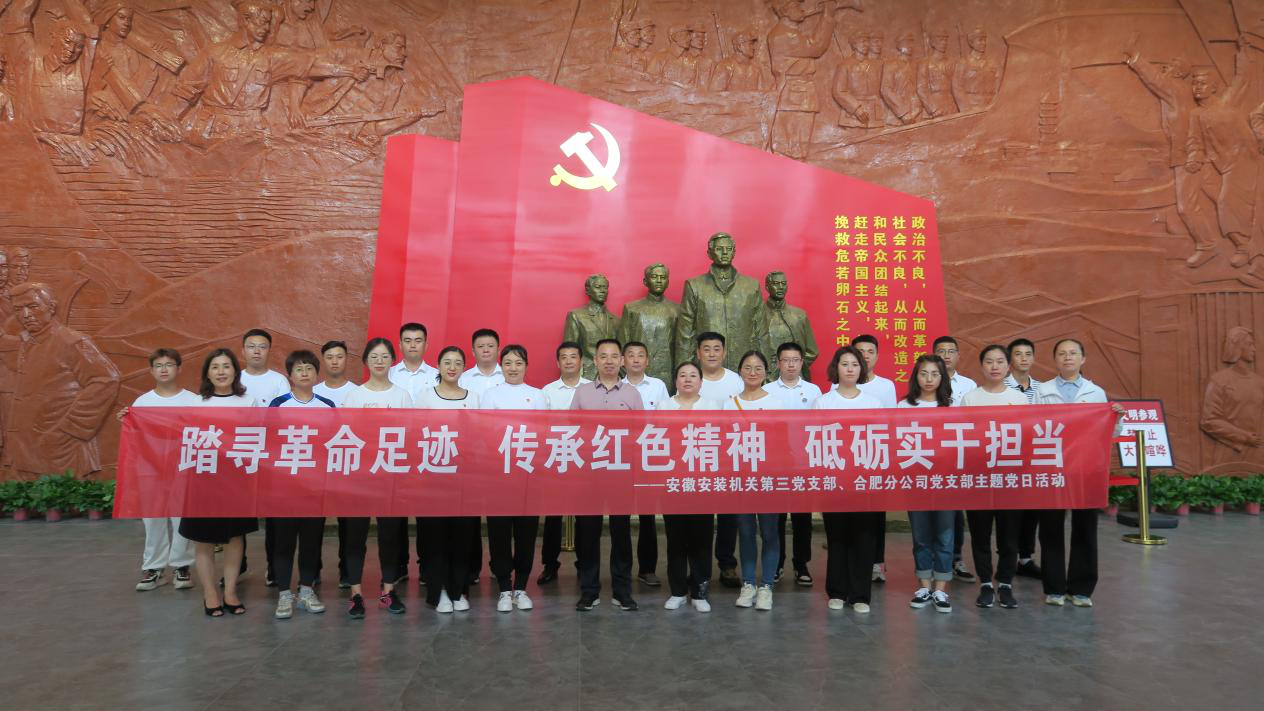 為熱烈慶祝中國共產(chǎn)黨成立101周年,深入學(xué)習(xí)貫徹習(xí)近平新時代中國特色社會主義思想,持續(xù)推動黨史學(xué)習(xí)教育走深走實。7月8日,機關(guān)第三黨支部和合肥分公司黨支部聯(lián)合開展以“踏尋革命足跡 傳承紅色精神 砥礪實干擔(dān)當”為主題的黨日活動,公司黨委書記、董事長胡六中,副總經(jīng)理李原以普通黨員身份參加活動。
