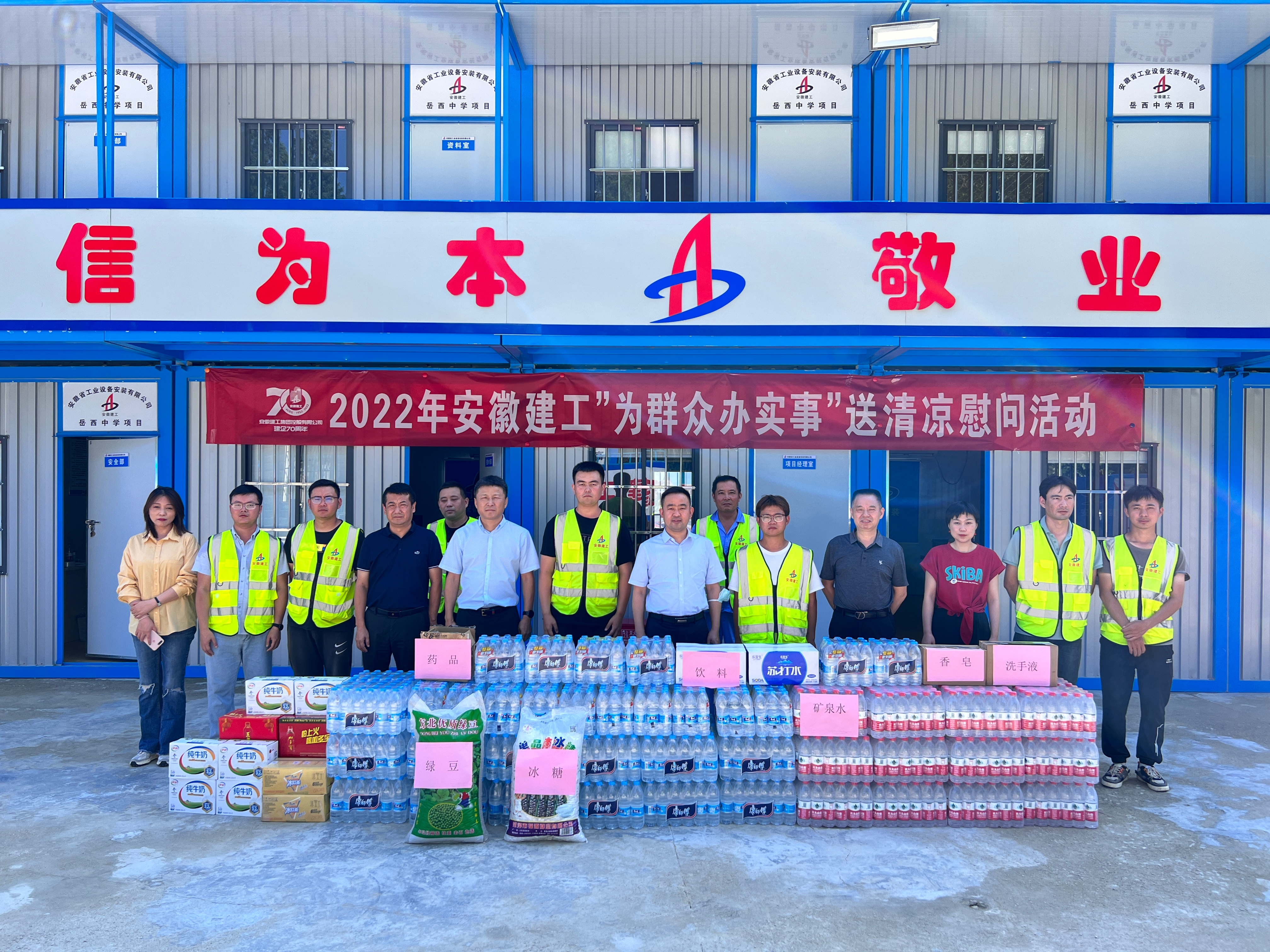 7月15日,建工股份黨委委員、副總經(jīng)理黃代赴安徽安裝岳西中學(xué)建設(shè)項目宣貫建工控股第一次黨代會精神暨開展“為群眾辦實事”送清涼慰問活動,安徽安裝公司黨委書記、董事長胡六中參加慰問。