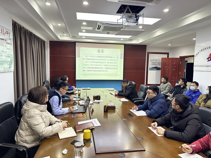 1月11日下午,安徽安裝公司黨委副書記、副總經(jīng)理周正平赴安慶分公司開展黨的二十大精神宣講,分公司全體員工參加宣講會(huì)。