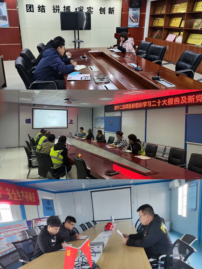 安徽安裝蚌埠分公司團支部召開團支委會傳達學習黨的二十大精神,并分別于康寧項目部、臨港項目部組織青年團員深入學習黨的二十大會議精神。