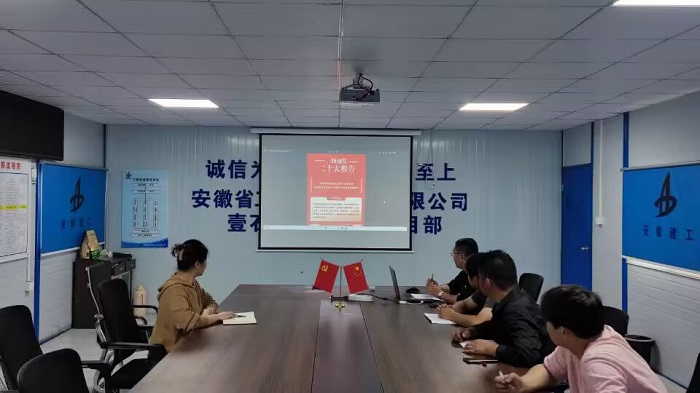 安徽安裝房建(裝飾)分公司壹石通項目部組織學習安徽共青團公眾號發(fā)表的關于黨的二十大的總結學習文件。