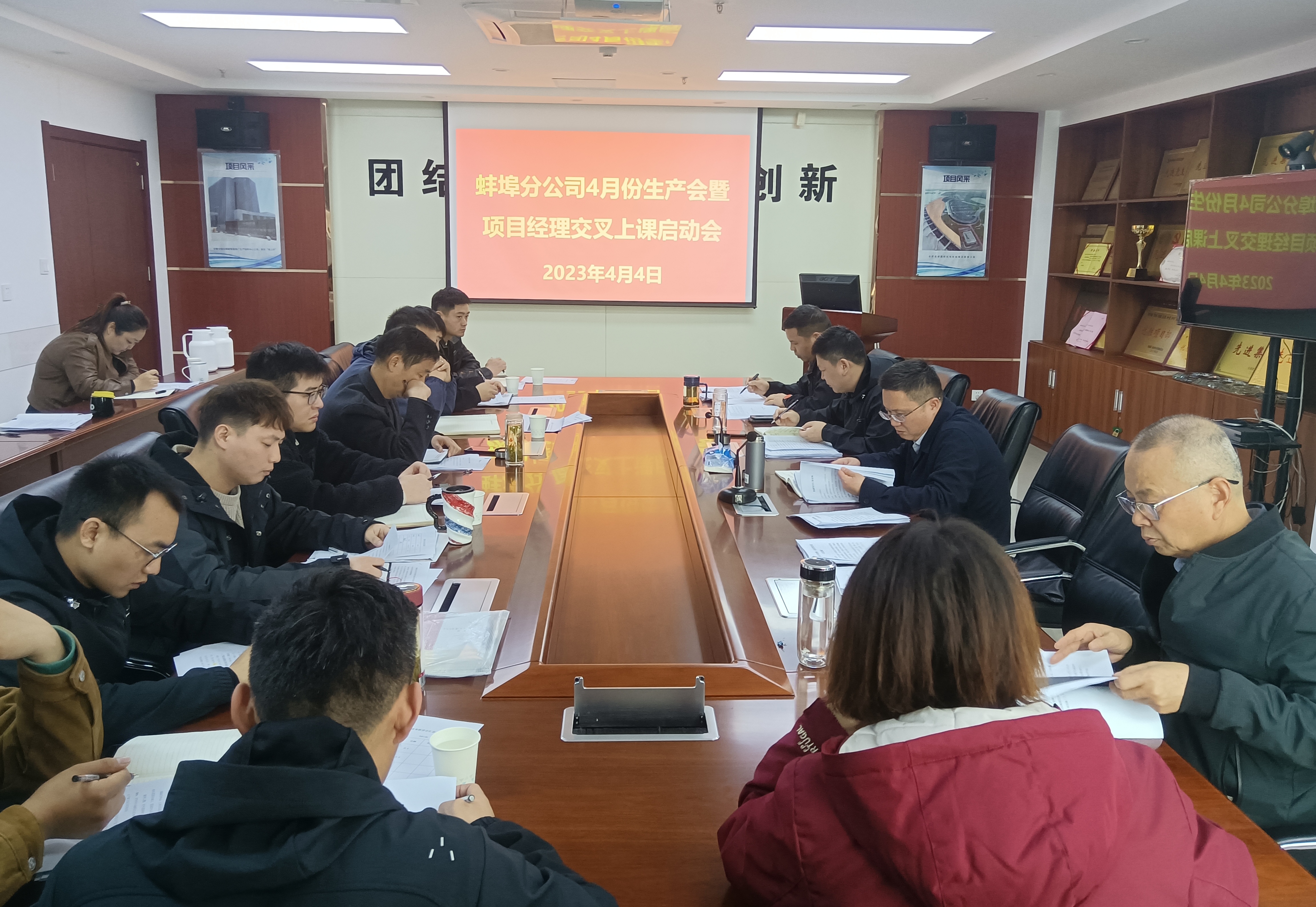 4月4日上午,蚌埠分公司召開4月份生產(chǎn)經(jīng)營會暨項目經(jīng)理交叉上課啟動會,分公司領導班子、各項目經(jīng)理、機關各部門負責人、工管部全體人員參加會議,會議由分公司副經(jīng)理郭洋主持。